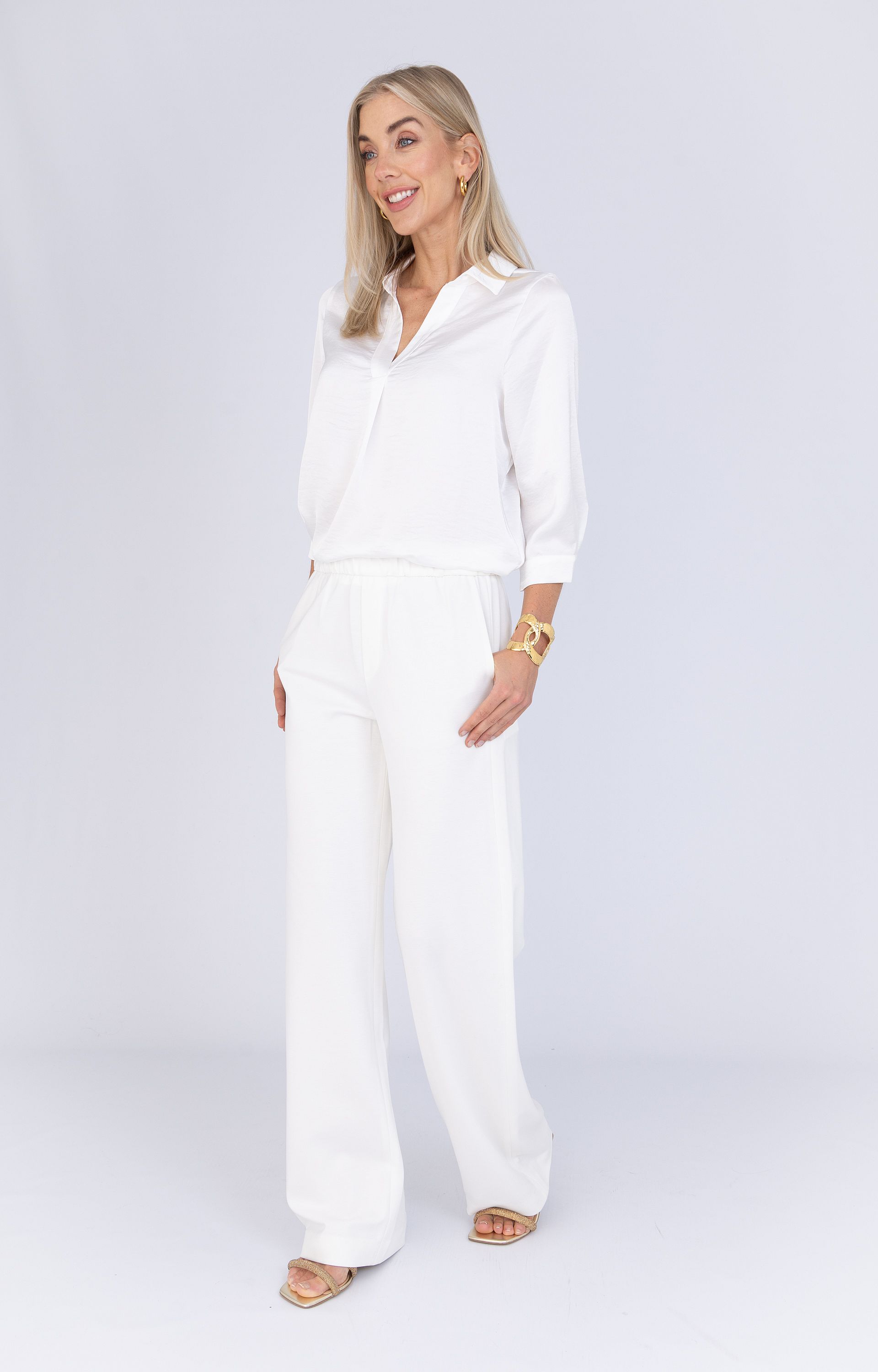 Deze witte blouse van Anna is gemaakt van licht en ademend polyester, perfect voor zomerse dagen. De blouse heeft een normale pasvorm en een V-hals voor een verfijnde uitstraling. De lichte structuur in de stof zorgt voor een subtiel effect. Dankzij de tijdloze kleur is dit item makkelijk te combineren met verschillende stijlen. Een veelzijdige toevoeging aan je zomergarderobe.