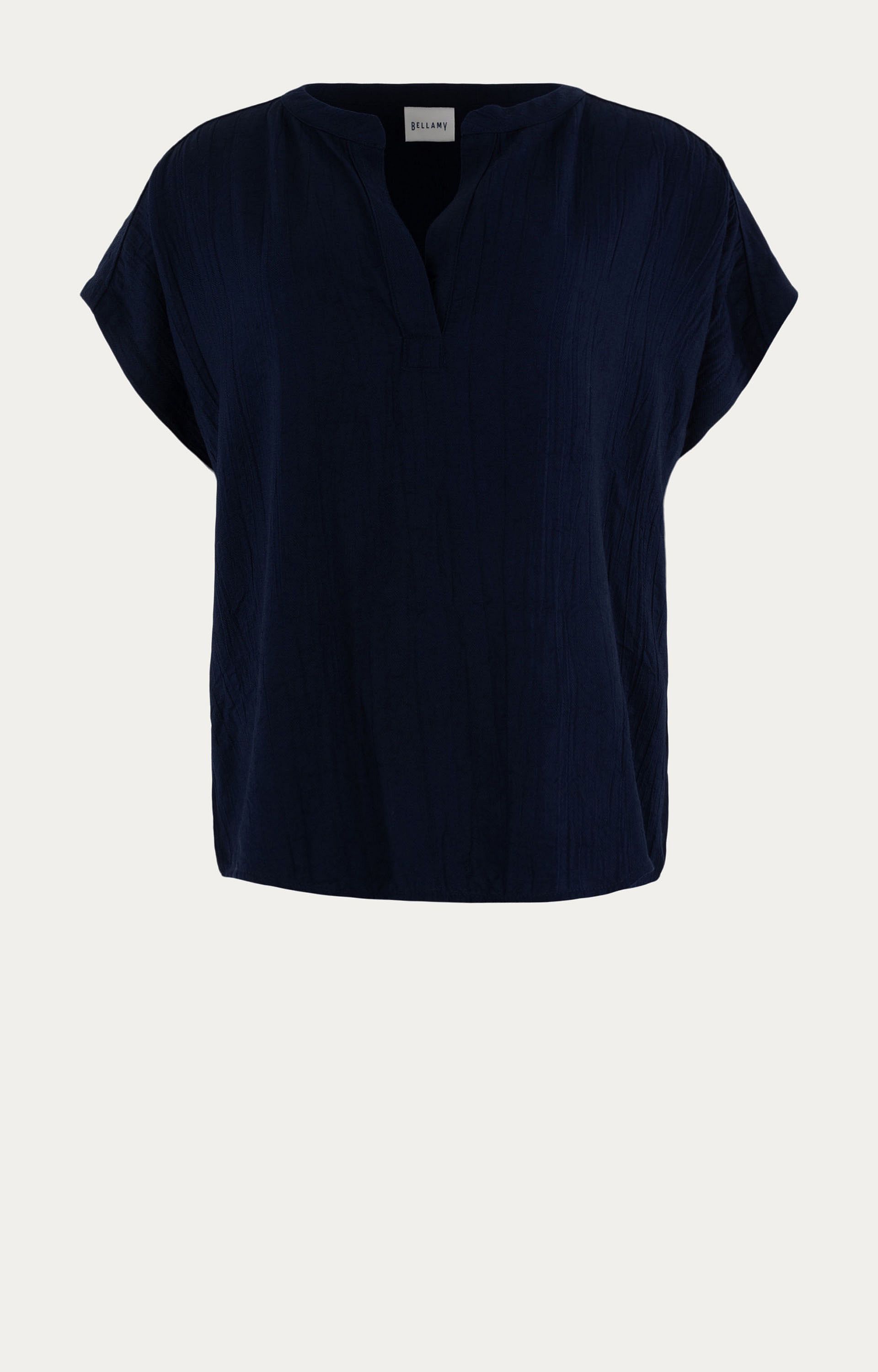 Deze luchtige broek van Bellamy is gemaakt van een zachte mix van Lenzing™ Ecovero™ viscose en polyamide. De elastische tailleband zorgt voor optimaal draagcomfort, terwijl de wijde pijpen zorgen voor een ontspannen en moderne look. De navy blue kleur maakt deze broek veelzijdig en perfect te combineren met de bijpassende top of een andere zomerse basic. Ideaal voor warme dagen dankzij het ademende materiaal.