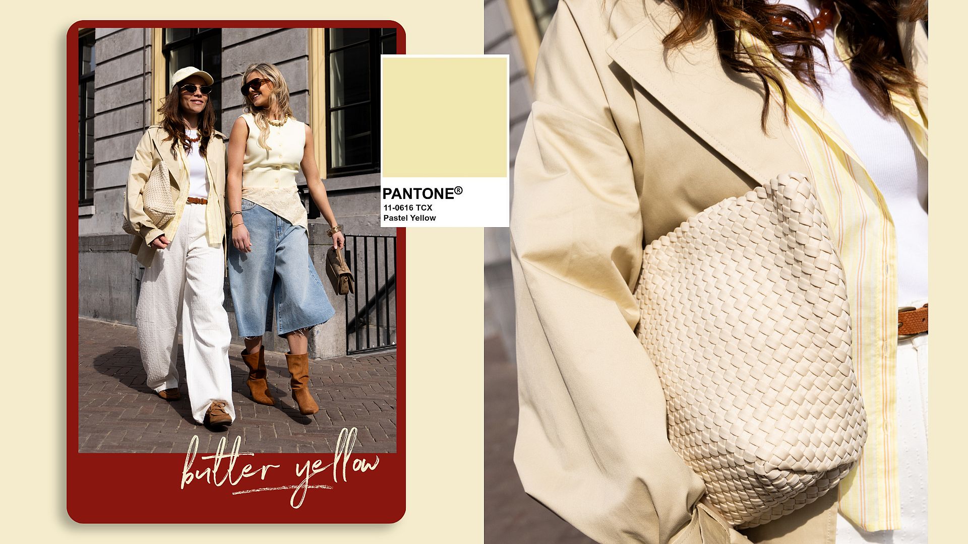 Pastelgeel brengt een frisse, lichte uitstraling naar het voorjaar. De zachte tint laat zich moeiteloos combineren met neutrale kleuren, denim en zachte pastels. Van subtiele details tot statement pieces, deze zonnige kleur zorgt voor een moderne en vrouwelijke look. Licht, stijlvol en perfect voor het nieuwe seizoen.
