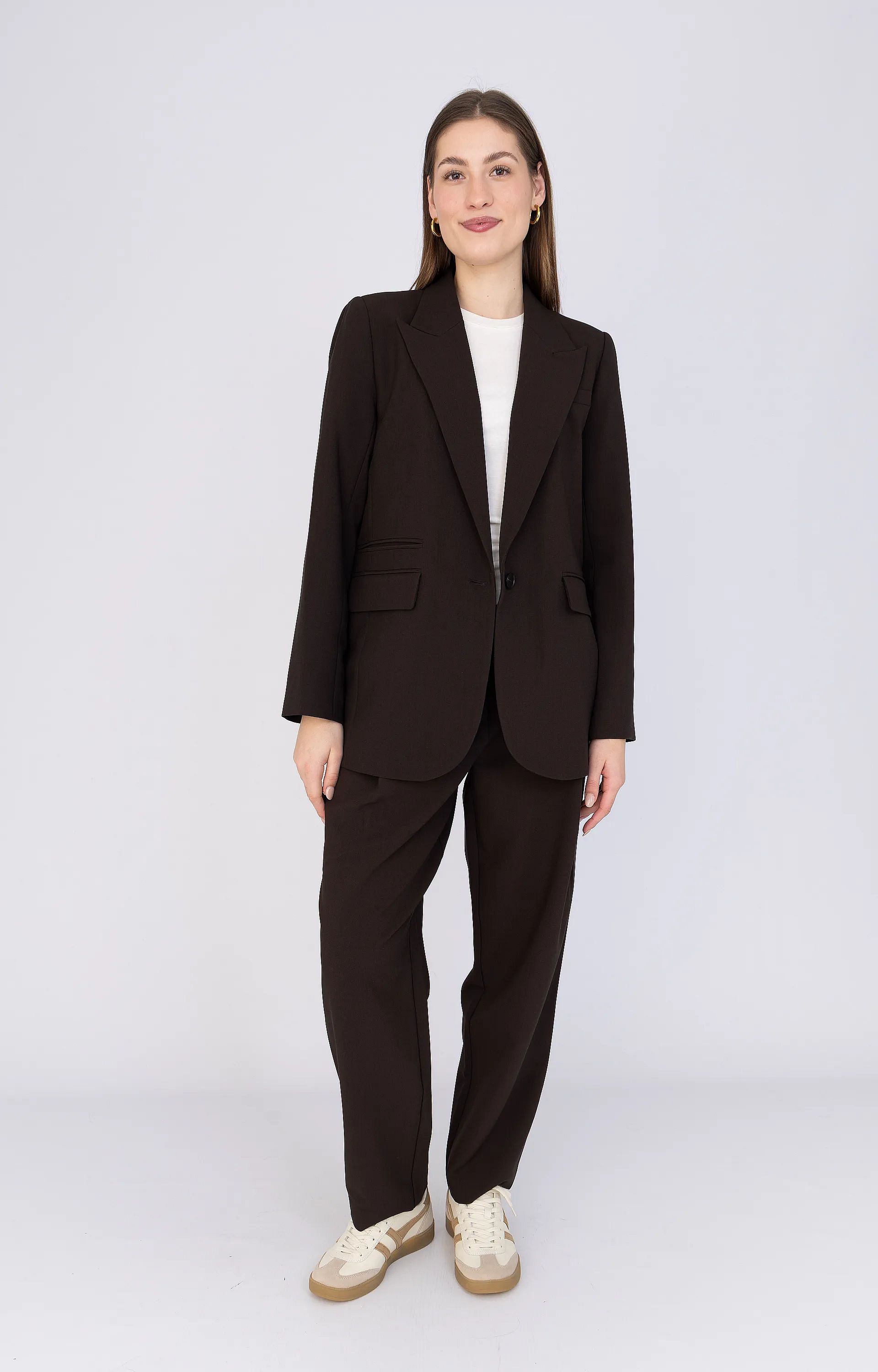 De enkelvoudige knoopsluiting en flapzakken geven de blazer een klassieke twist, terwijl de oversized fit zorgt voor een moderne, nonchalante look. Draag ‘m over een top of jurk voor een effortless chique uitstraling, geschikt voor zowel werk als vrije tijd.