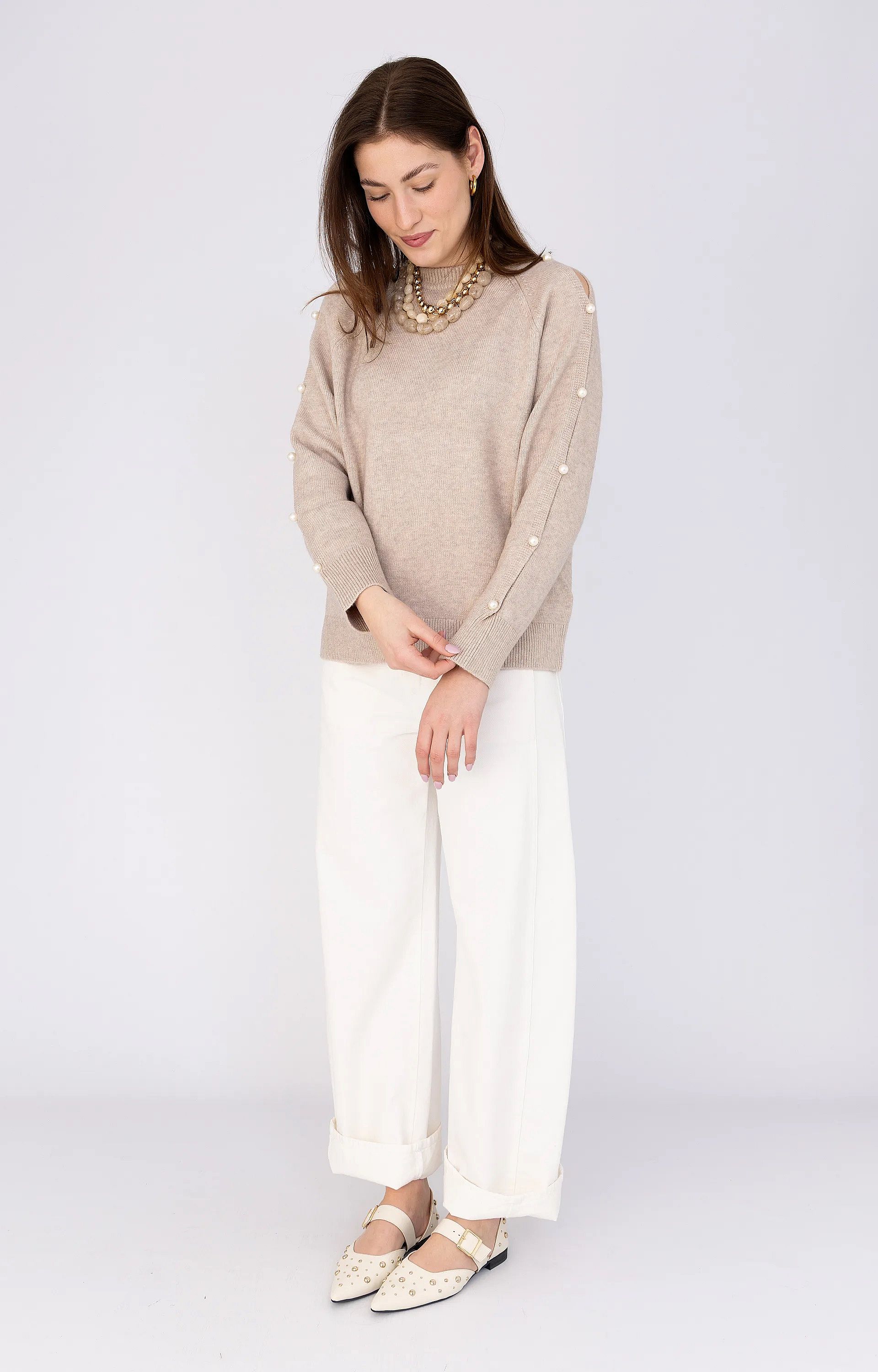 Deze grey sand pullover van Co’Couture is een zomerse knit met verfijnde details. Het model heeft een normale pasvorm en is afgewerkt met ribboorden voor een nette afwerking. De ronde hals zorgt voor een tijdloze uitstraling. Parels en subtiele cut-outs geven de trui een bijzondere touch. Gemaakt van een mix van acryl, polyester en polyamide voor een licht draagcomfort.