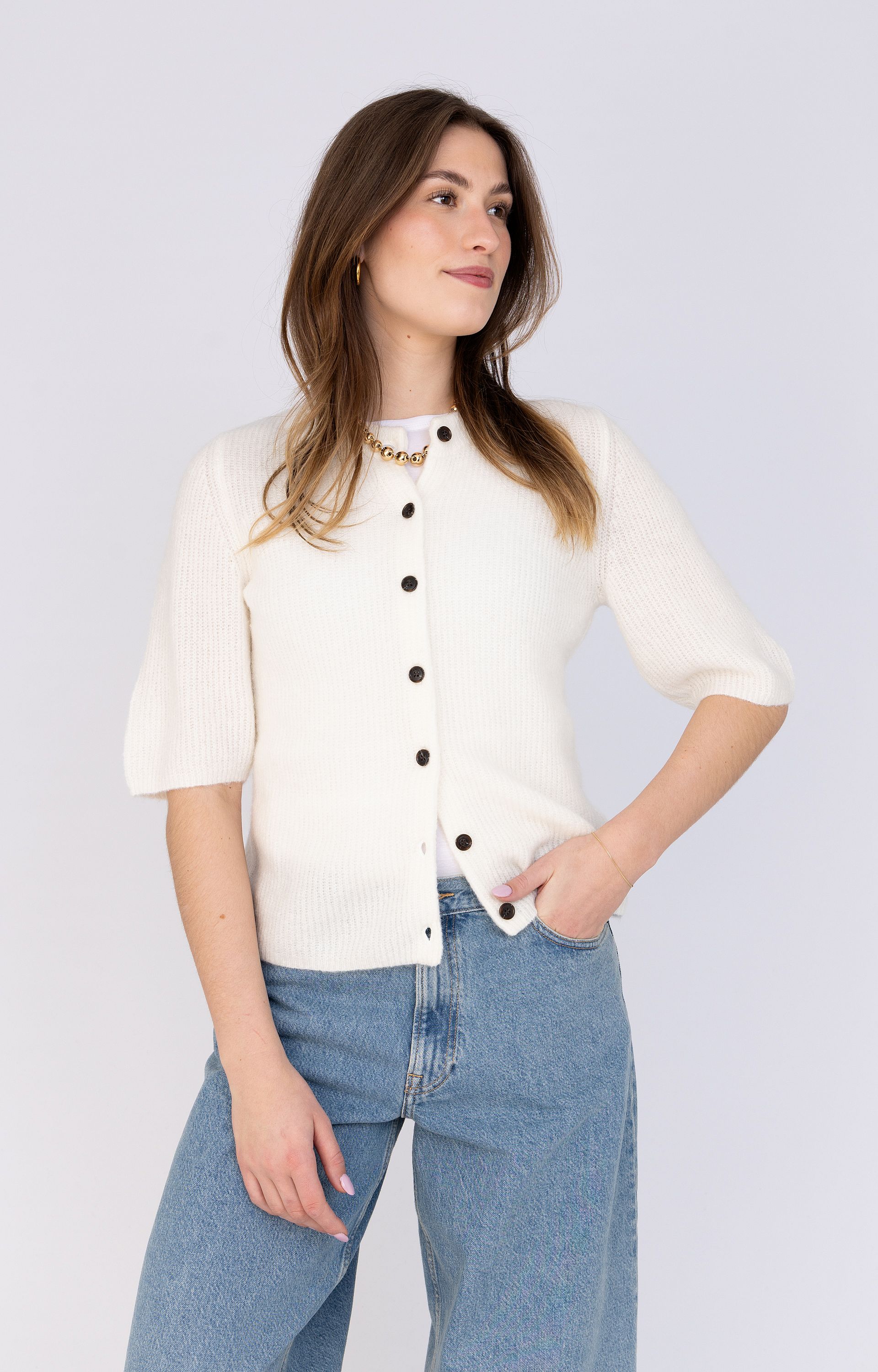 Kleur: Gebroken wit met beige en licht karamel
