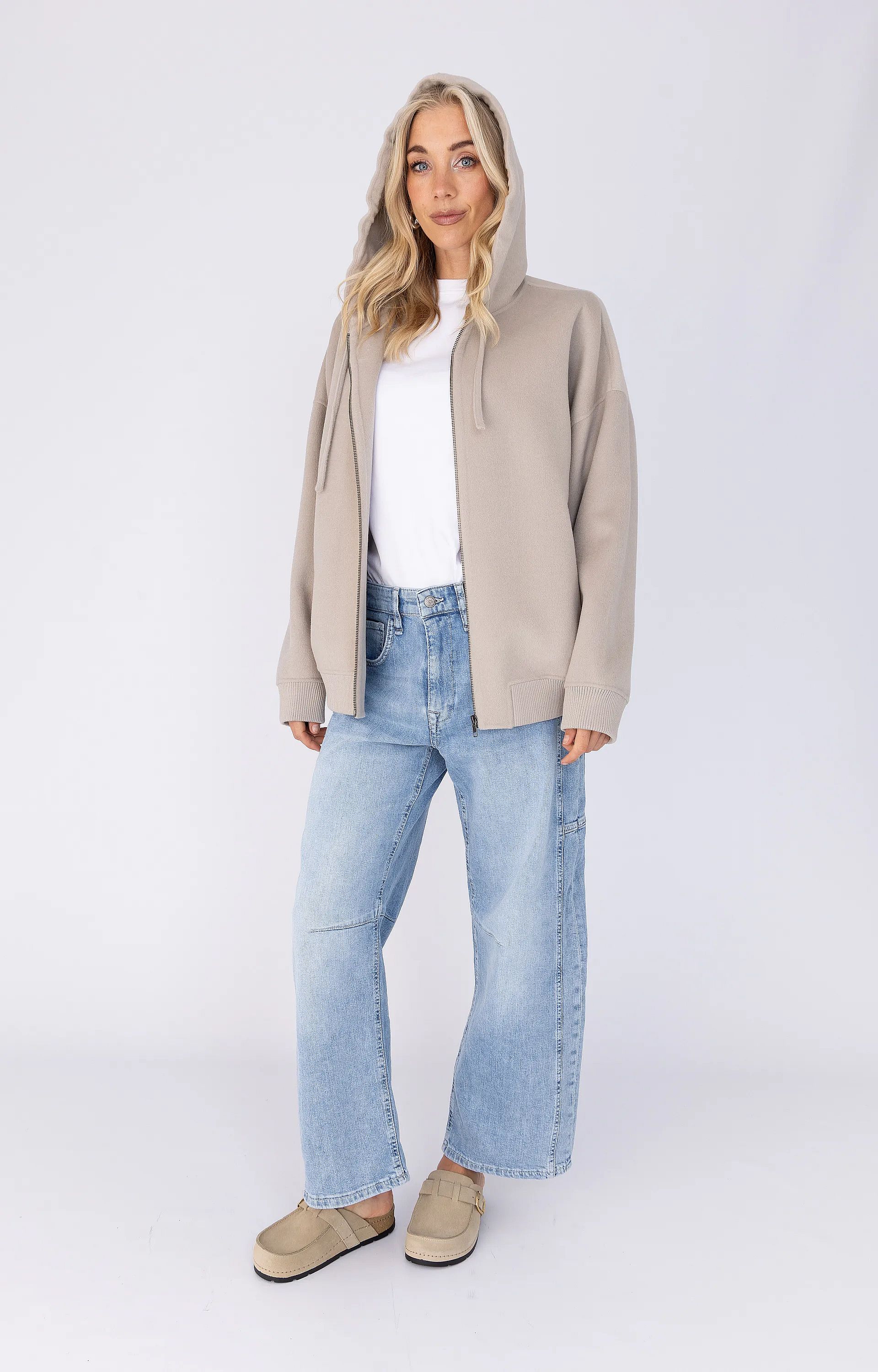 – Pasvorm: Barrel fit, cropped lengte
