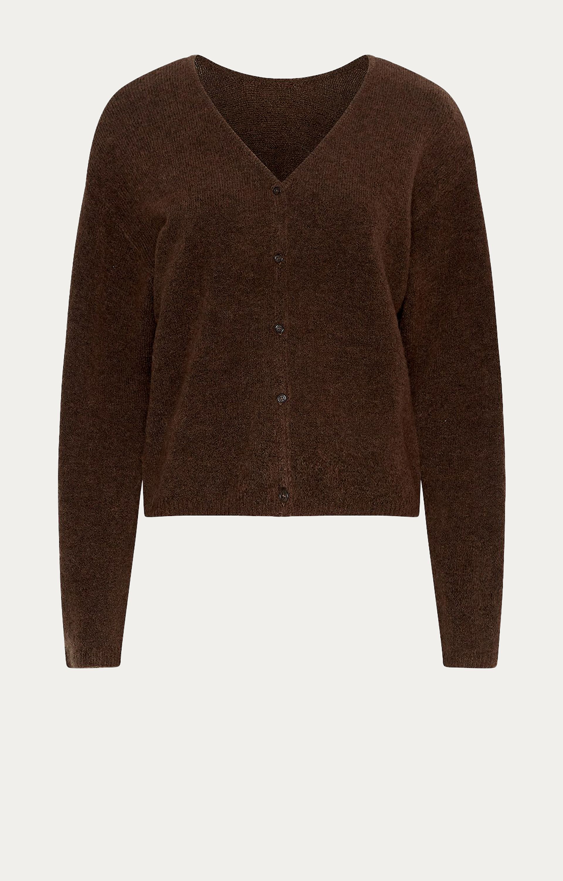 Kenmerken: Zacht breisel, kleur donkerbruin, royaal formaat, logo detail